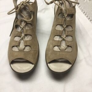 These are never worn lovely comfy shoes size 8 suede tan. Lace up. Super comfy memory foam