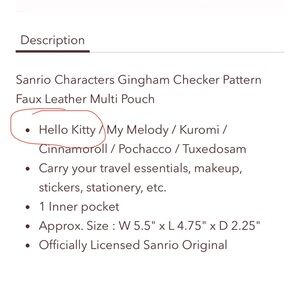 New hello kitty purple gingham checkered pattern pouch