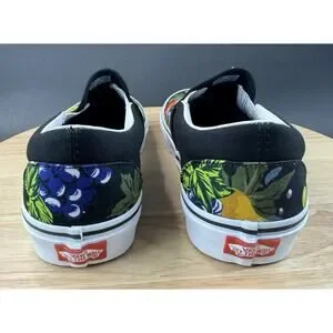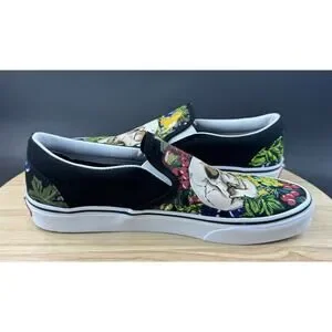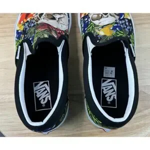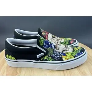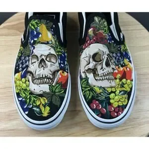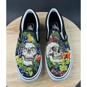 Vans Classic Slip-On Fruit’ Skull Black White Canvas Shoes Sz Men 8.5 Women 10