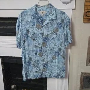 good used condition. Island Shores. XL. 💯 Rayon. front pocket. blue and tan. chest 27 inches. length 30 inches. B3