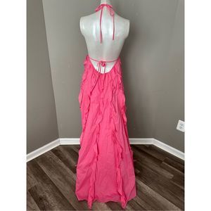 ONLY AT SAKS. Crafted of billowy cotton, STAUD's Marika halter gown showcases a dramatic open back and cascading ruffles.