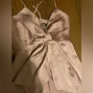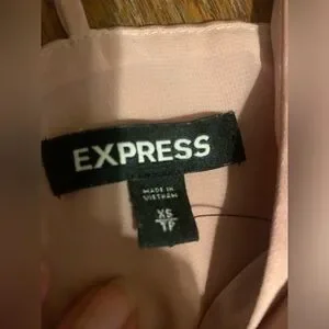 express fairycore polyester pink top with adjustable straps, and it has a split down the middle that opens. features a side to side high low effect, as well as a zipper on the back. size xs