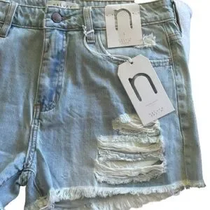NWT Nature Denim Boutique High Rise Distressed Shorts Blue Size L