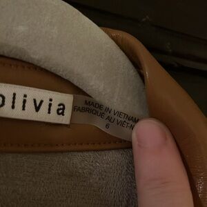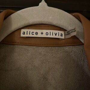 Alice + Olivia camel faux leather long sleeve snap front dress size 6 EUC