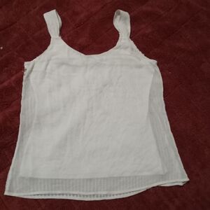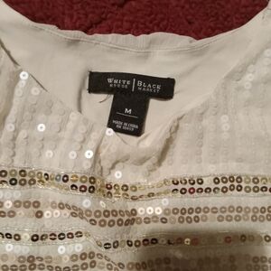 White House Black Market Cream Sequined Shear Overlay Sleeveless Blouse