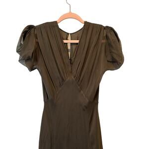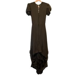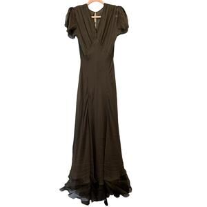 Morgane Le Fay Dark Green Silk Boho Steampunk Fairy Goddess Tiered Maxi Dress S