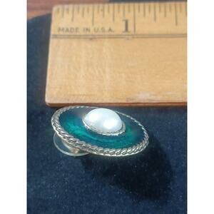You will receive these beautiful Green Enameled earrings with a golden tone and a white pearl like center. These retro earrings are perfect for office or dinner. They are in good pre-owned shape. Any Questions Please Ask. Look at all pictures for complete condition