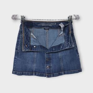 Womens American Eagle Outfitters Stretch Blue Jean Button Front Skirt Size 00