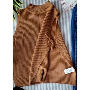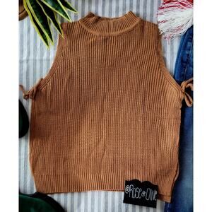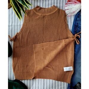 Y2K Camel Brown Mock Neck Knit Sweater Vest Tank Top