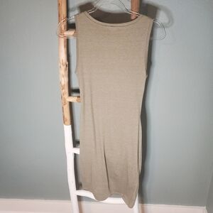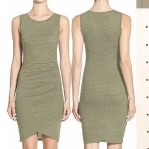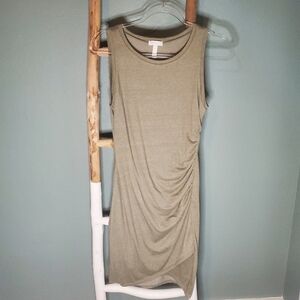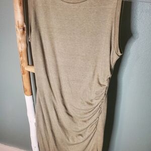 Gentle ruching at one side adds soft texture to a slinky tulip-hem tank dress