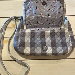 Vera Bradley carson mini shoulder bag. Neutral buffalo check. Gray. Faux Leather trim. NWT