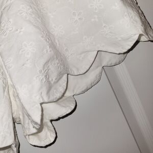 white eyelet fabric, llined inside so it is not see through