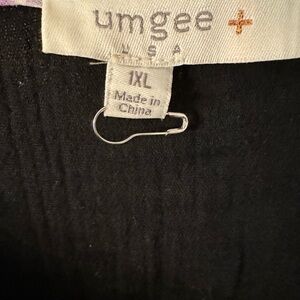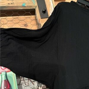 Brand new never worn the shirt is black. It has like three-quarter link sleeve maybe a little shorter kind of a little on the puffy side, but not too puffy embroidery is real not a sticker.