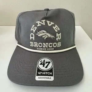 Brand new, never worn Denver Broncos hat. Dark gray with white emblem and rope across bill. Adjustable as well!
