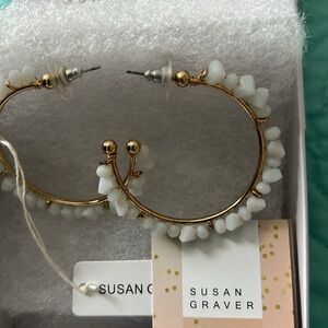 This is a pair of white beaded hoop earrings by Susan Graver with gift box