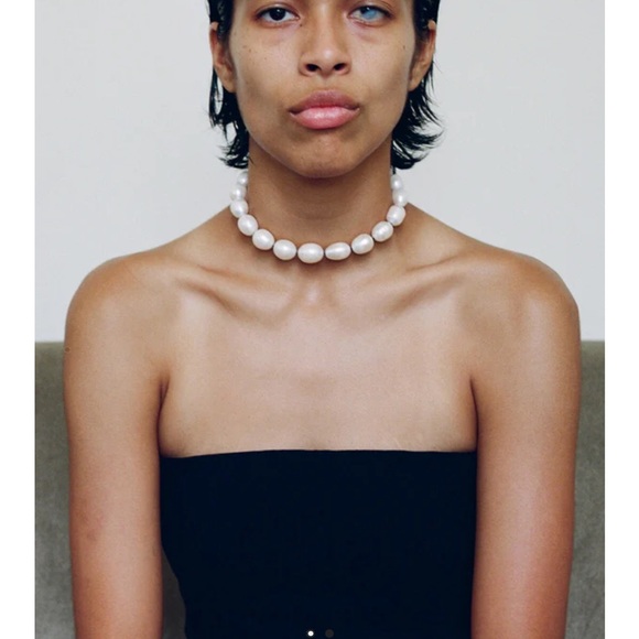 Sophie Buhai Deco Pearl Collar. Freshwater Baroque pearl collar strung on hand knotted silk thread with signature sterling silver 925 scroll clasp. Length of strand is approximately 16 inches long with the clasp. It would fit someone with a small or average neck size . The pearls are 16mm in diameter. Weight is 85.6 grams. This was created for the spring summer 2023 collection. It is handcrafted in Los Angeles. You can view her collection on her website. This necklace retails for $1300 USD and it is sold out.