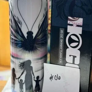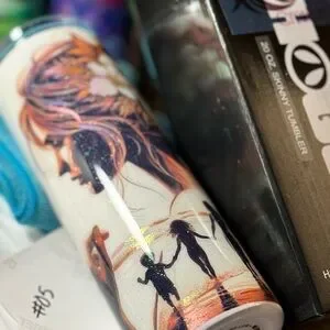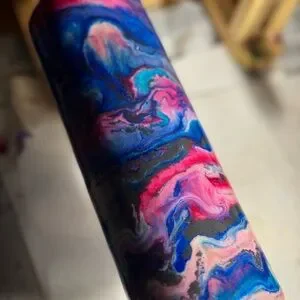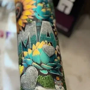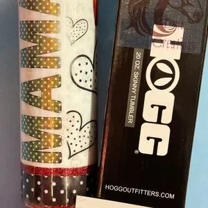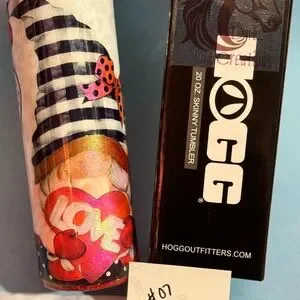 20 oz. Skinny Hogg Tumblers. Some have a coating of resin and some are decorated with inks, mica, glitter and some can be personalized. Keep your drinks cool for at least 10 hours and warm up to 6 hours. Fits in car cup holders. Personalized is extra. If you just want something simple like a sublimation…I can do those.