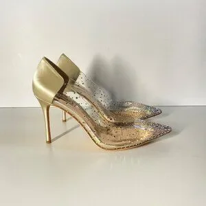 Badgley Mischka Gisela Rhinestone Clear PVC & Satin Stiletto Heels, size 9.5