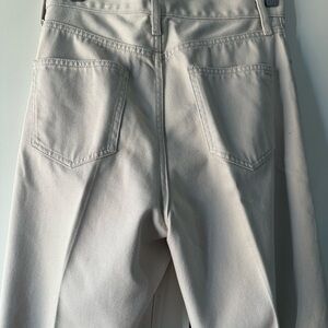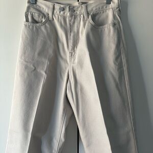 Muji denim pants for both formal and casual outfits. The two buttons allow you to adjust the waist and wear it either high-rise or mid-rise. Made with organic cotton.