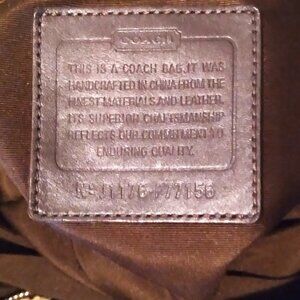 This is a large bag that is in the Coach signature canvas design with leather trim. I don't know if it was designed for being a diaper bag, but that is what my daughter used it for. It has an outer zippered pocket, an outer magnetic snap pocket and 2 outer side pockets. The inside is made of strong fabric and has 2 large, zippered pockets, a cloth divider and several pockets (maybe 8?) around the inside. I either can't find or she didn't give me the shoulder strap, as it is not with the bag. It measures about 15 inches long by about 6 inches wide and about 11 inches tall not including the straps. It was used and does show some signs of wear and dirt marks, but other than that, it appears to be in pretty good shape.
