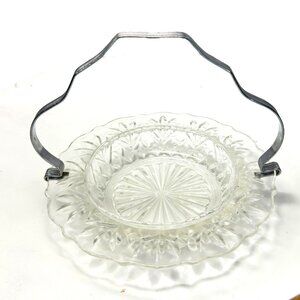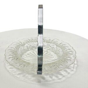 EAPG Glass Relish Dish Caddy-Chrome Handle w/Indent for Hanging Spoon/Fork