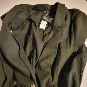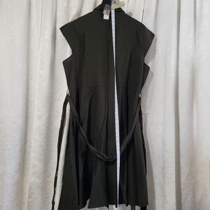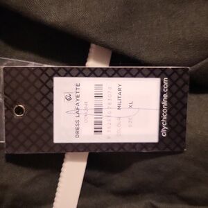 City Chic Women Dress Lafayette, Size XL/22, Color Military Green, Collared Neckline, Short Capped Sleeve, Side Pockets, Waist Tie Belt, Linen and Cotton Blended, Buttons Closure, Business Casual, Lagenlook, Comfy, Teacher wear, New with Tag