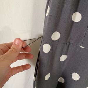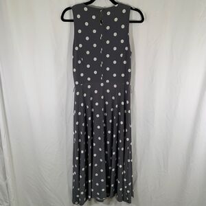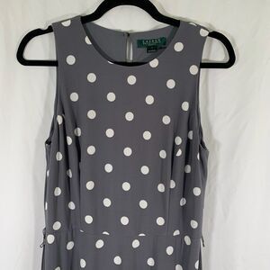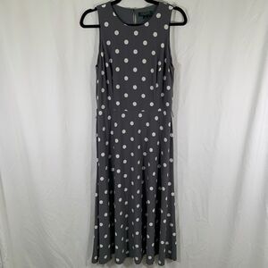Lauren Ralph Lauren Midi Dress Women's 8 Grey Polka Dot Sleeveless Round Neck