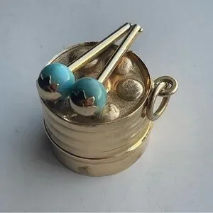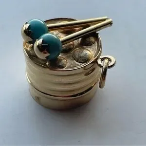 14K Yellow Gold Drum Charm Pendant 6.30 grams Vintage