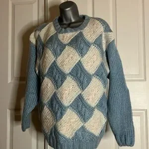 Via L.A. woman’s knit sweater. Size M. Long sleeves. Pretty color combo of blue and cream with splashes of pink. The blue is not as dark as it looks. See photo 3 for the correct shade of blue. Approximate flat measurements are: pit to pit 21” Sleeve length shoulder to cuff 19”. Overall length is 26”. Questions welcome.