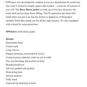 49 Winters Metallic Boxy Hooded Down Puffer Jacket 3 Large NWT $515