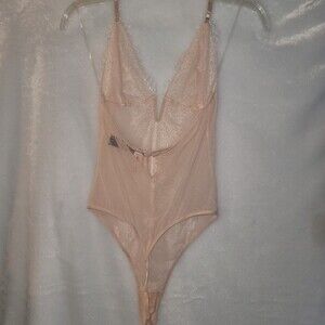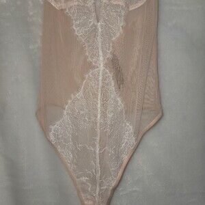 Victoria's Secret V-wire Plunge Very Sexy Lace Teddy Beige Medium NWT