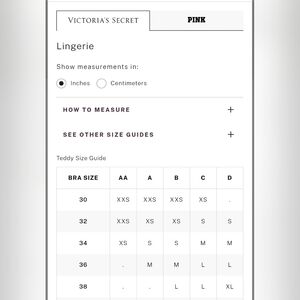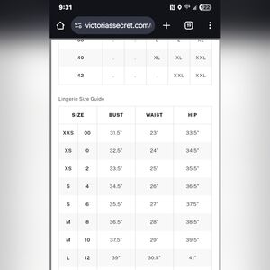 @newmaciel just added 2 Size charts directly from Victoria's Secret site
