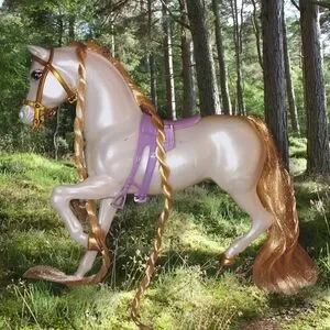 ♡ I believe it's from 2001, but it's Princess Rapunzel's From The Barbie Movie Mattel Brand White Horse With Saddle and Bridle In Really Good Condition ♡