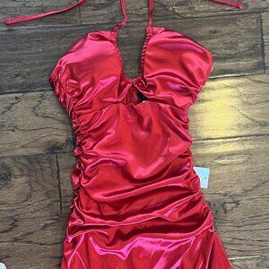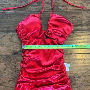 NWT $139 B DARLIN Formal Dress Size 1/2 Juniors Red Satin Keyhole Halter Gown XS