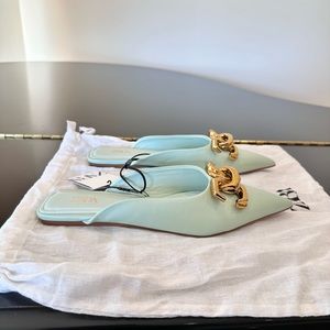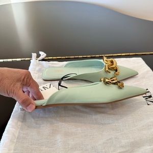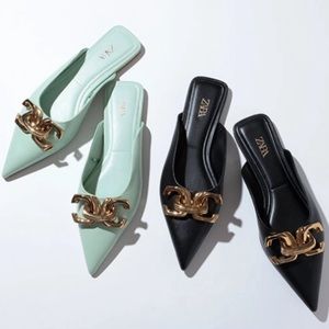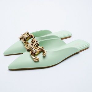 Rare Summer Luxury Zara flat mules/shoes with pointed toe and chunky buckle detail