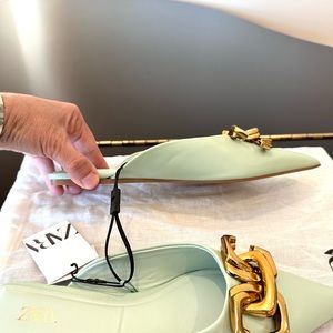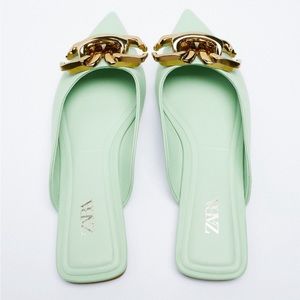 NWT Rare Zara Flat mules/shoes with pointed toe and chunky buckle detail