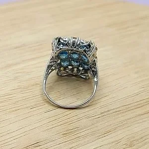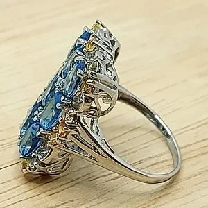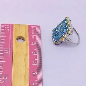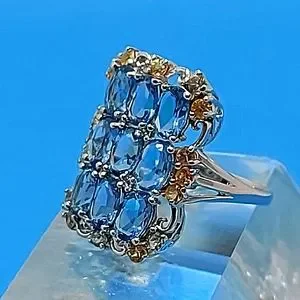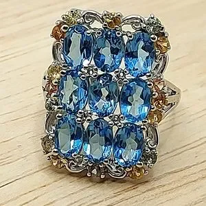 Natural Oval Swiss Blue Topaz 6x4mm & Sapphire 925 Sterling Silver Ring Sz 7.0