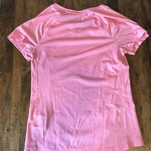 Pink athletic top from Nike. In great used condition, only worn a few times. Small snag in fabric on back mech and one on front panel as seen in pictures. Otherwise perfect condition.