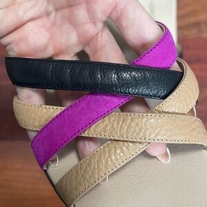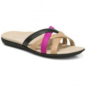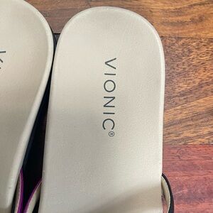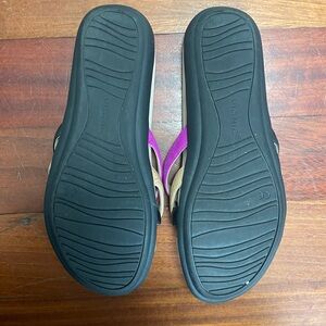 Vionic Dava Leather Sandals Size 7 Flats Strappy Summer Black Tan Purple