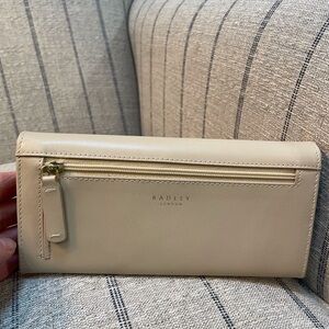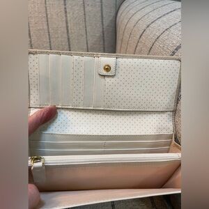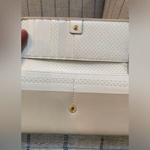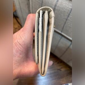 Beautiful wallet in like new condition, outer coin pocket, 13 card slots, 3 large slots for bills, large inner zippered pocket. Snap closure.
