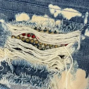 Robins Jean Shorts Womens Size 30 Blue Distressed Gypsy Jeweled Raw Hem Cut Off