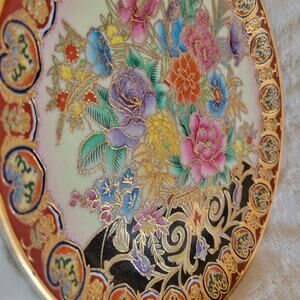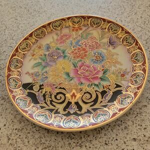 VTG Handpainted Asian Floral 22k Gold Gild Chinese Porcelain 10" Display Plate