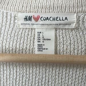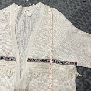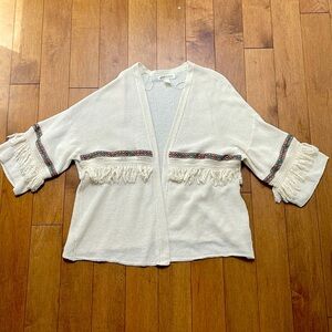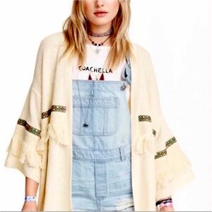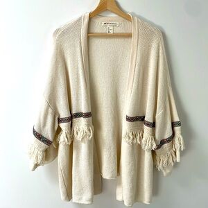 H&M Coachella Cadigan Kimono poncho Cream Knit Embroidered Fringe Sleeve Boho L
