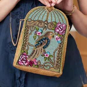 • Vibrant Avian Design: The Mary Frances Pretty Parrot Beaded Crossbody Handbag features a striking, multicolored parrot motif.