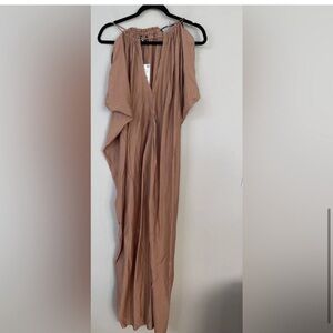 NWT • ZARA • STUNNING Lightweight Billowy Maxi Dress with Black Beaded Trim