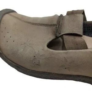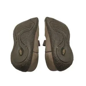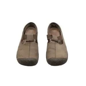 These are t-strap Mary Jane shoes with a wraparound rubber overlay by KEEN. The cushioned footbed and reinforced toe offer comfort and protection, whatever the adventure.