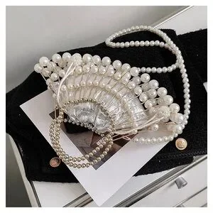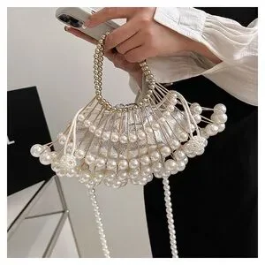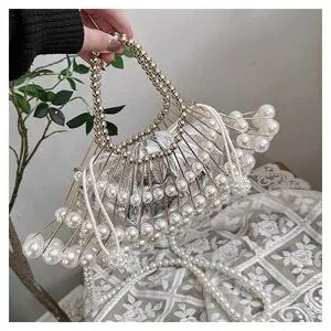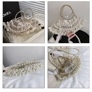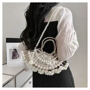 Bags Spring and Summer New 2024 Retro Evening Handbags Chanel Style Pleated Pearl Chain Diagonal Hollow Bag