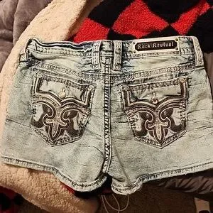 rock revival shorts size 31. probably a 3 1/2 length. wore one time couldn't return just wrong size.