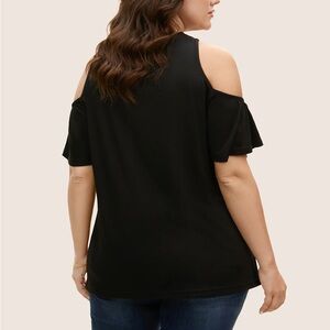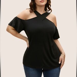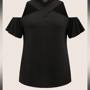 Bloomchic Solid Overlap Collar Ruffle Sleeve T-Shirt