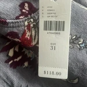 Anthropologie woman’s high-rise pants . Size 31. Inseam 26.High-rise skinny floral ankle pant . 96% cotton 4% spandex. NWT . New with tags. Any reasonable offer will be accepted .